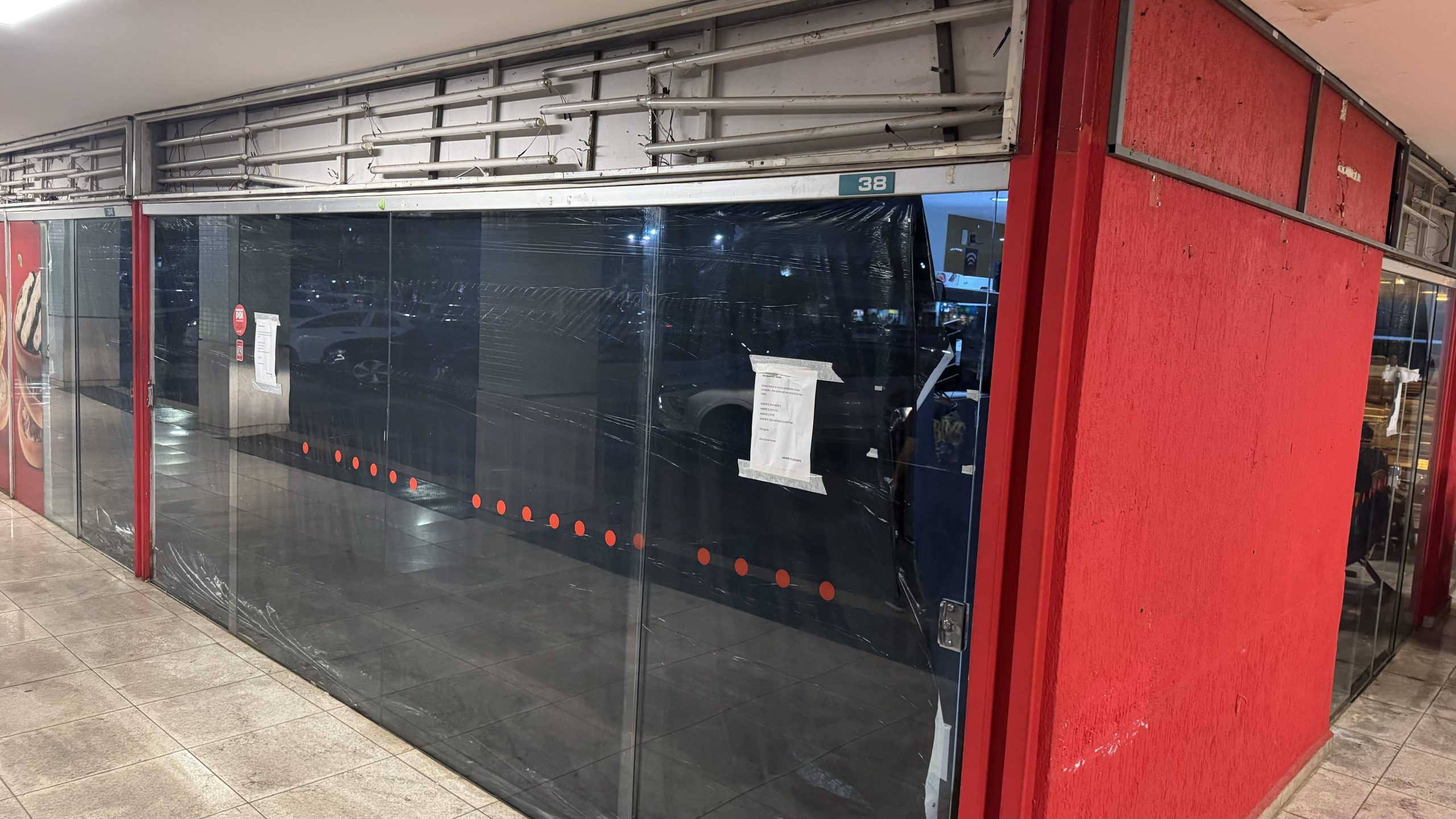 A placa com a logomarca foi retirada da fachada e um plástico preto cobre parte das portas de vidro. Mesmo assim, é possível ver que ainda há alguns móveis dentro do local. Não há sinais de que o imóvel será alugado ou vendido, nem que outro tipo de comércio ocupará o espaço do restaurante.